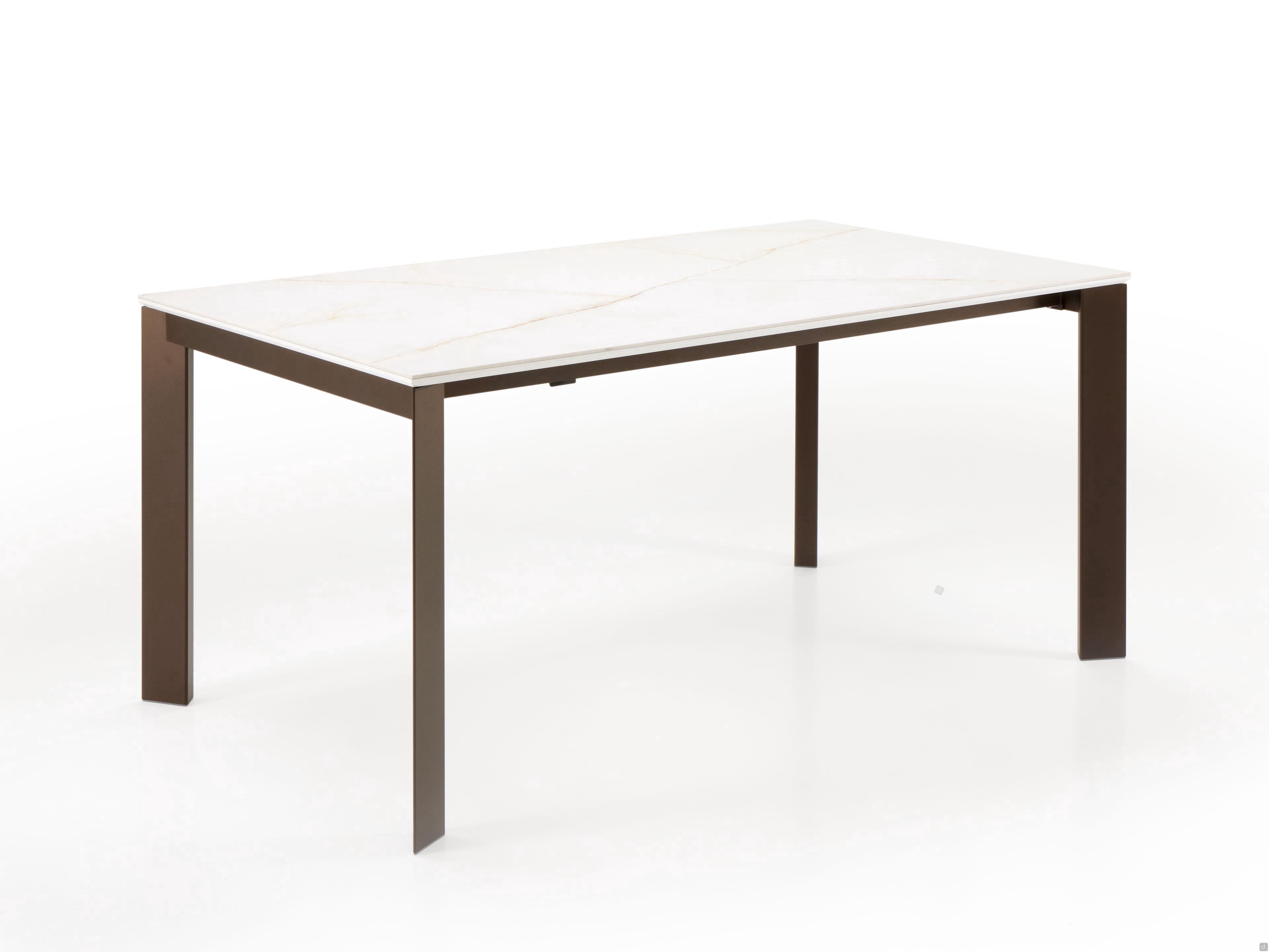 Materiali e Finiture- piano: Ceramica Cristallo Gold Caress K26- allunghe e sottopiano: MDF bianco- struttura: Bronzo Goffrato M19