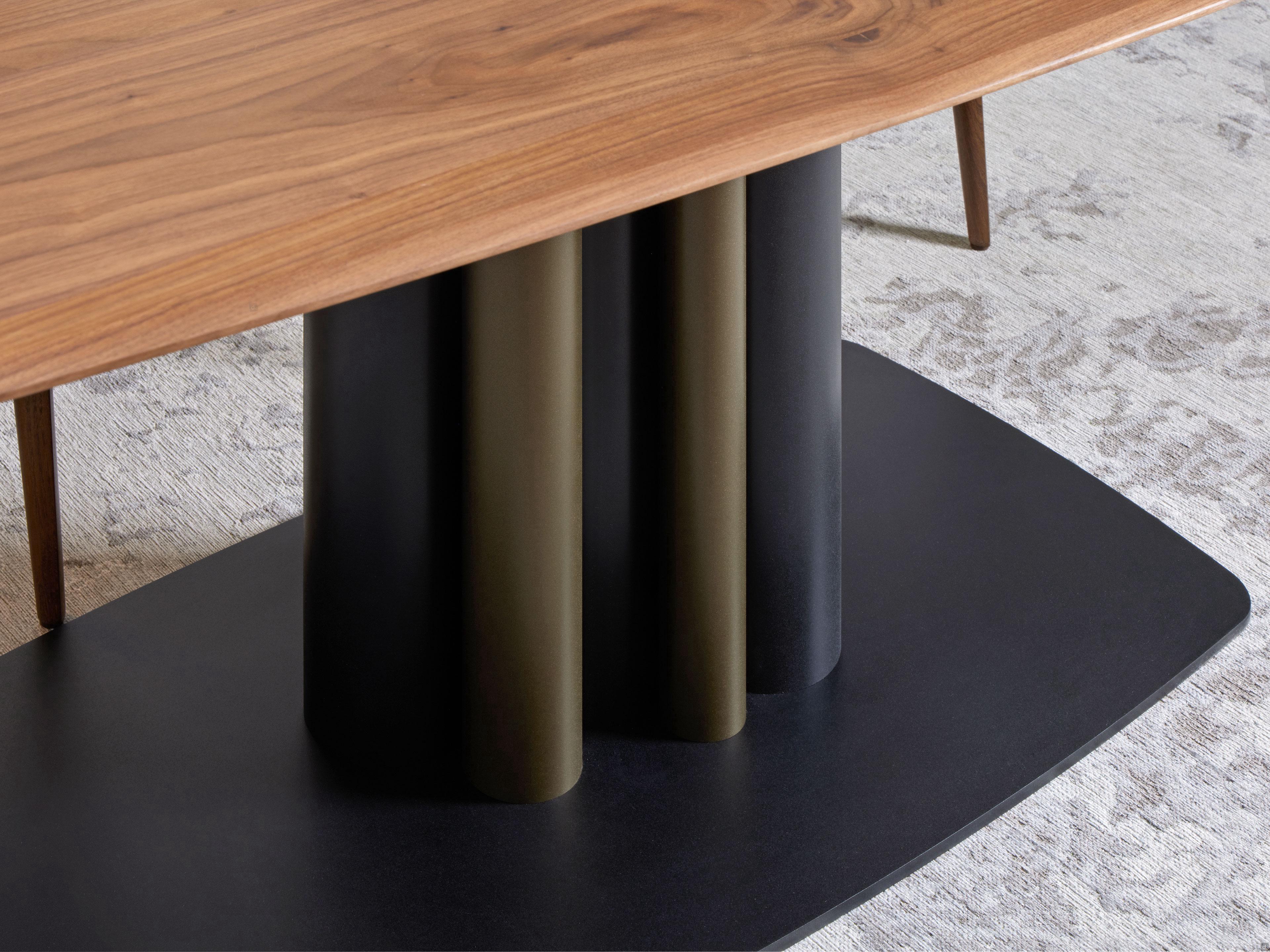 Allunghe Laterali a Baionetta: consentono di trasformare un tavolo fisso in allungabile. Il sistema prevede l'installazione di apposite piastre sottopiano, all'interno delle quali vengono inserite le aste di fissaggio di cui sono dotate le allunghe: queste devono essere riposte a parte. Le allunghe sono larghe cm 50 ciascuna e sono in tinta al piano (con continuità di vena ricercata, ma non garantita). Piastre sottopiano e aste di fissaggio sono sempre in metallo verniciato nero.