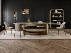 Odyssey è un tavolo moderno con piano in cristallo disponibile nelle forme rettangolare e sagomato fisso. Questo elemento di design si pone come protagonista indiscusso delle zone living e, per soddisfare diverse esigenze di arredo, viene proposto anche con il top in legno (Noce Canaletto, Frassino Nero o Testa di Moro), ceramica o marmo in più finiture.Da notare la base in metallo verniciato che, con la sua struttura "vuota" e le linee stondate, ruba l'occhio anche in ambienti con molto spazio, soprattutto se abbinata al piano in cristallo che la rende ben visibile anche quando si è seduti al tavolo.Elegante e raffinato, questo tavolo rettangolare dai bordi smussati si presenta in perfetta armonia tra forme e materiali, un equilibrio dal design unico.