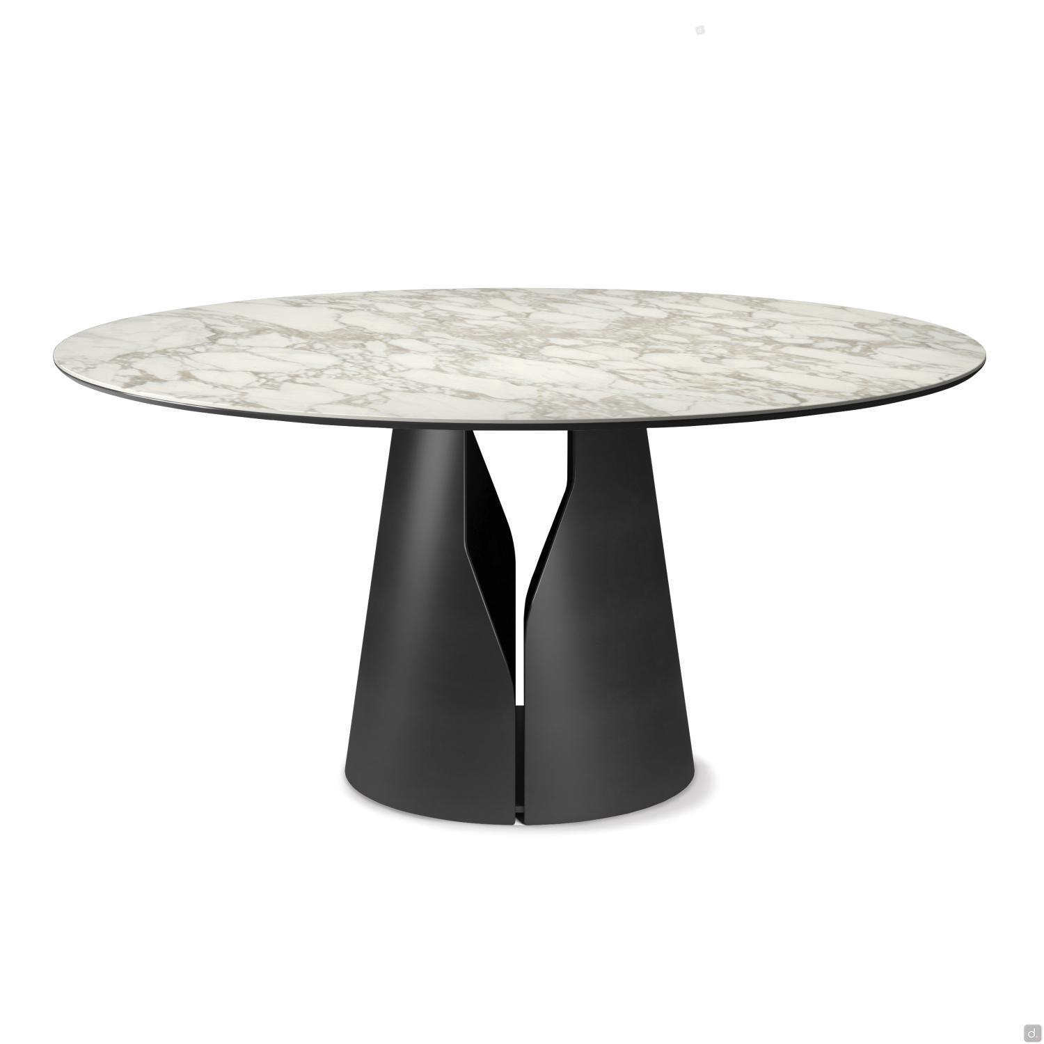 Giano di Cattelan è un tavolo moderno con piano a botte, caratterizzato da una base conica in metallo goffrato formata da due blocchi sagomati accoppiati.Il piano è disponibile in pietra Keramik effetto pietra, per un aspetto elegante e raffinato in un materiale estremamente resistente e idrorepellente, perfetto per l'uso quotidiano. In alternativa è disponibile anche con piano in legno, ideale in ambienti che necessitano di un tocco di calore, oppure in argilla spatolata a mano su base in MDF o in vetro cristallo CrystalArt.